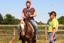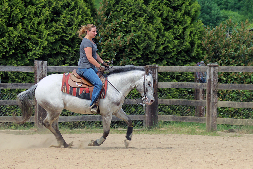 Bei Ronny werde ich von Grund auf im Westernreiten aufgebaut und mit seinen guten Erklärungen, dem Humor und Beispielen aus dem alltäglichen Leben schafft er es immer wieder sich mir verständlich zu machen. Er beweist jedes Mal eine Engelsgeduld, selbst wenn ich noch so viele Fehler mache und diese auch schon zum wiederholten Male. Aufgeben ist hier keine Option.